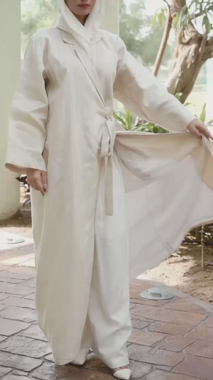 A softly structured two-piece set crafted from 100% pure linen with smooth inner lining. Designed with ease and breathability in mind, it features a relaxed silhouette and subtle folds with a wrap-style tie — perfect for warm days, effortless elegance, and soft minimalism.