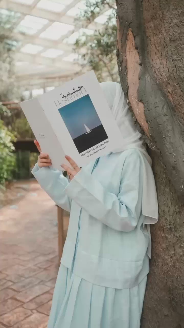 A fully lined, one-piece dress thoughtfully designed to give the illusion of a separate top and skirt. The upper part resembles a soft, structured blouse that ends at the hips, while the lower half flows into a high-waisted pleated skirt that reaches the ankles. Though it looks like two pieces, it’s crafted as a single garment—offering ease, elegance, and modesty in 100% linen.